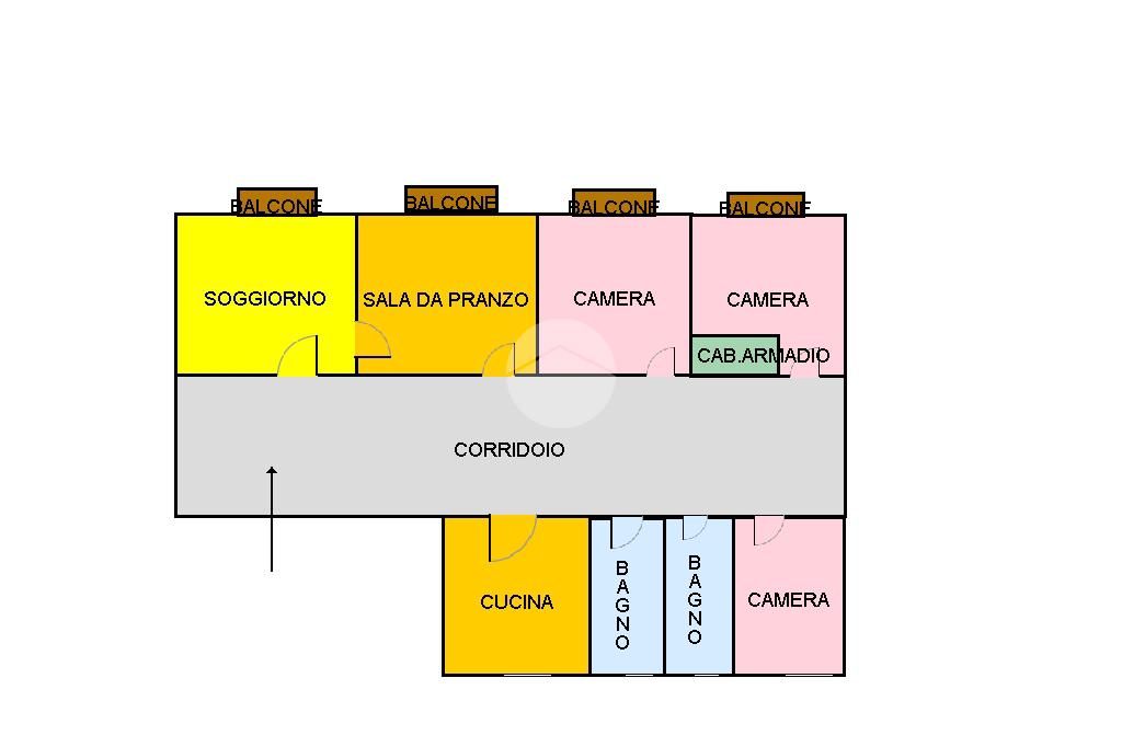 L'ingresso si apre su un ampio corridoio che disimpegna tutti gli ambienti principali: una cucina funzionale, un doppio salone con sala da pranzo luminoso ideale per momenti di convivialità e relax, e una zona notte composta da tre spaziose camere da letto.
