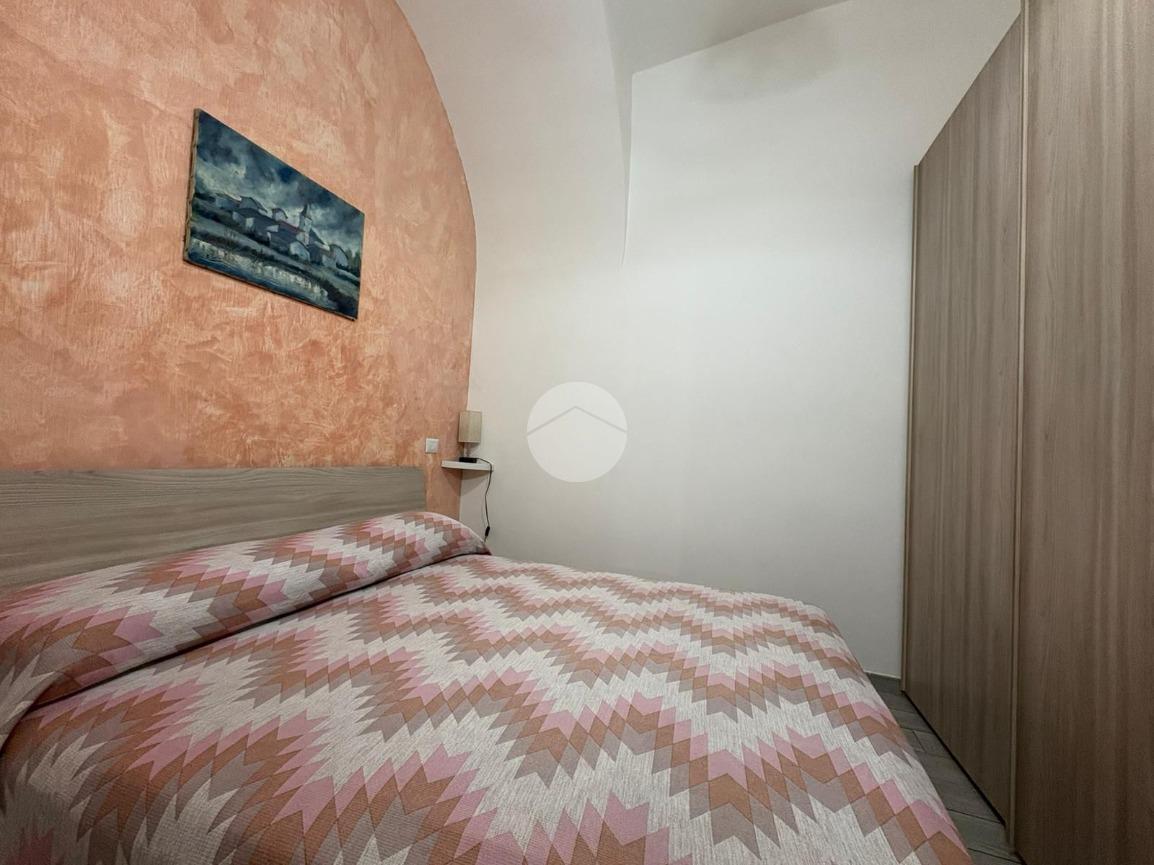 L'appartamento è composto da un ingresso che conduce a un luminoso soggiorno con angolo cottura, due camere da letto e un bagno.